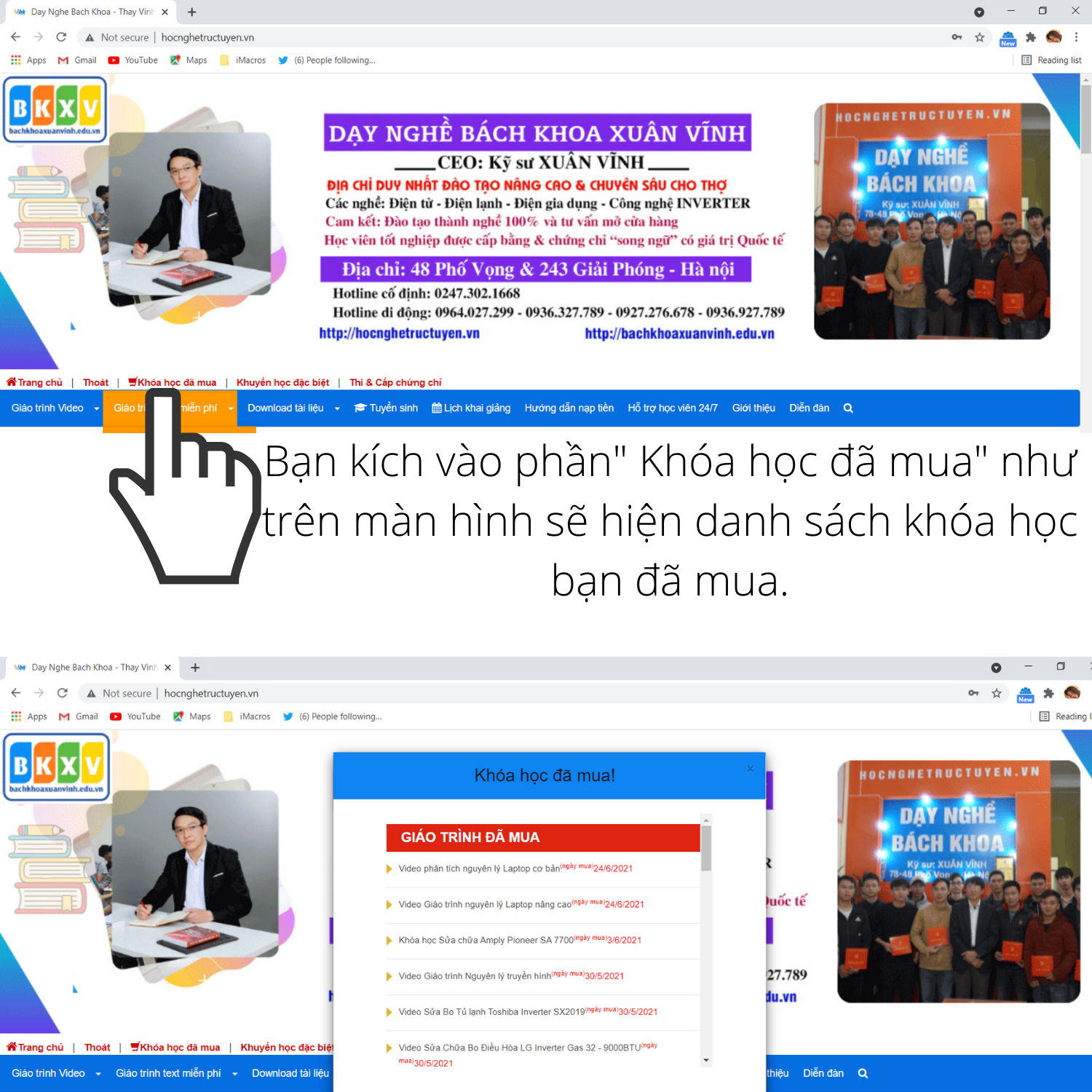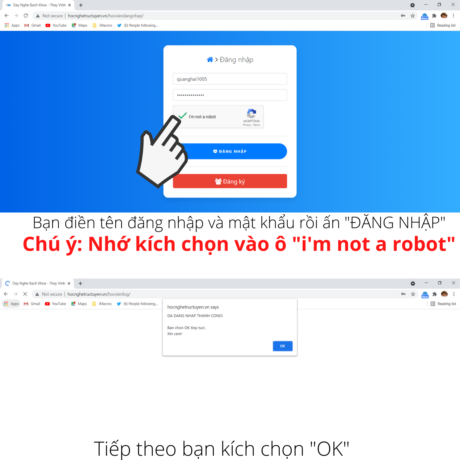 Chúc quý học viên học tốt: Nếu không đăng nhập được vào web bạn có thể liên hệ phòng kỹ thuật theo số điện thoại: 0964 027 299