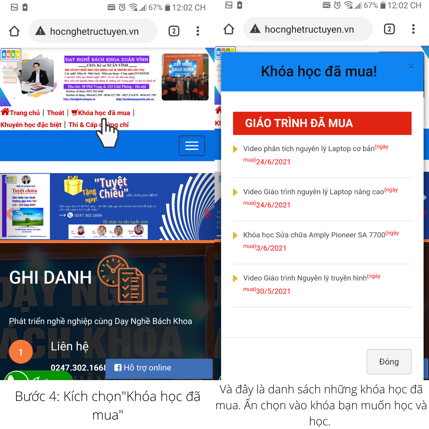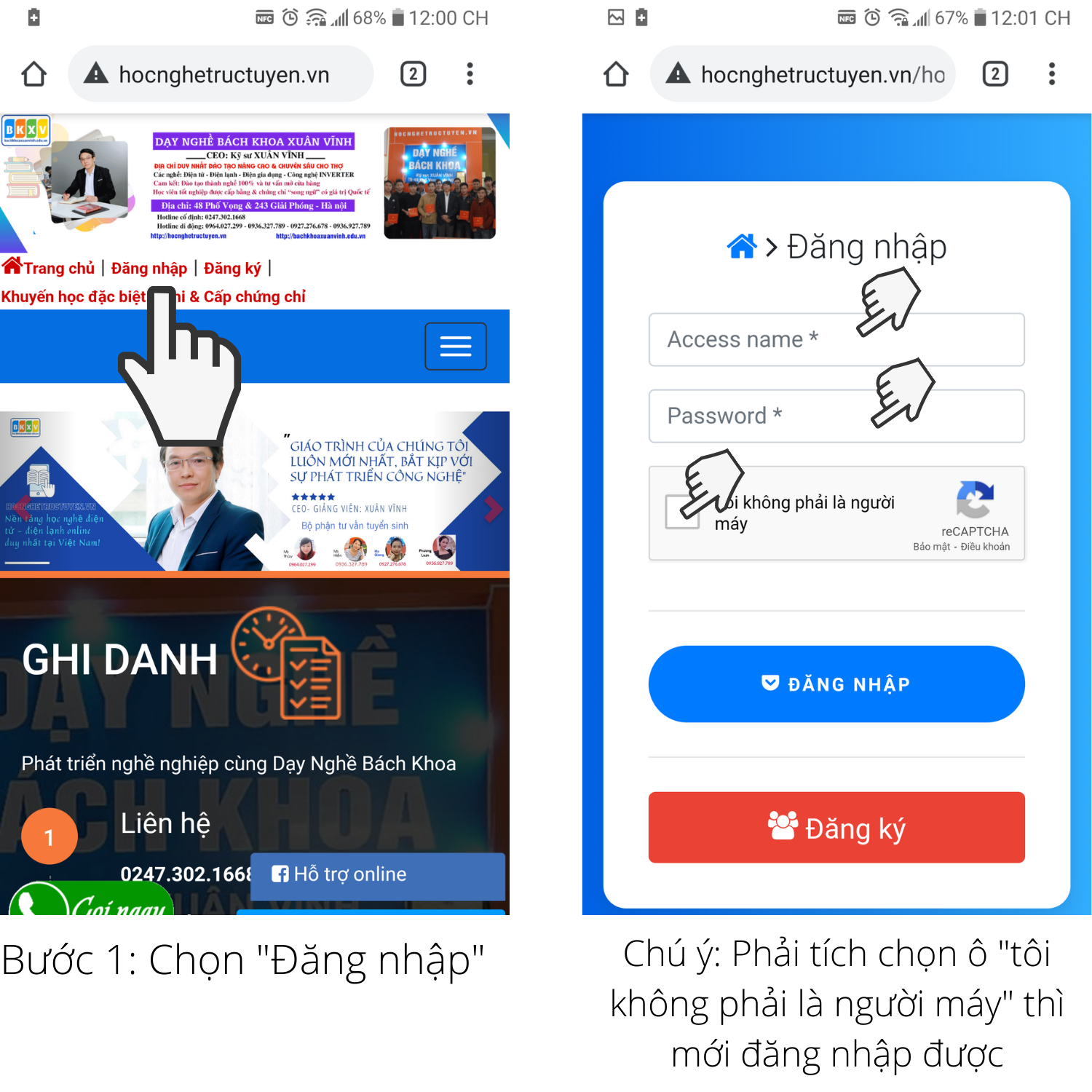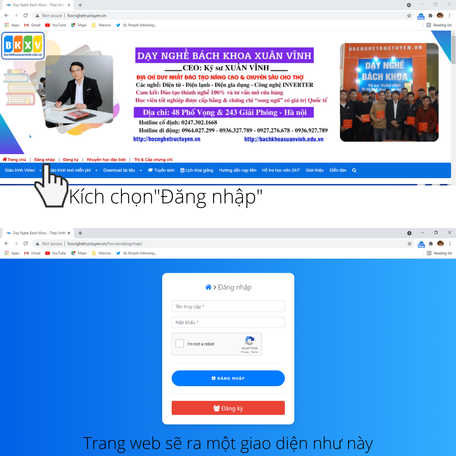 Chúc quý học viên học tốt: Nếu không đăng nhập được vào web bạn có thể liên hệ phòng kỹ thuật theo số điện thoại: 0964 027 299